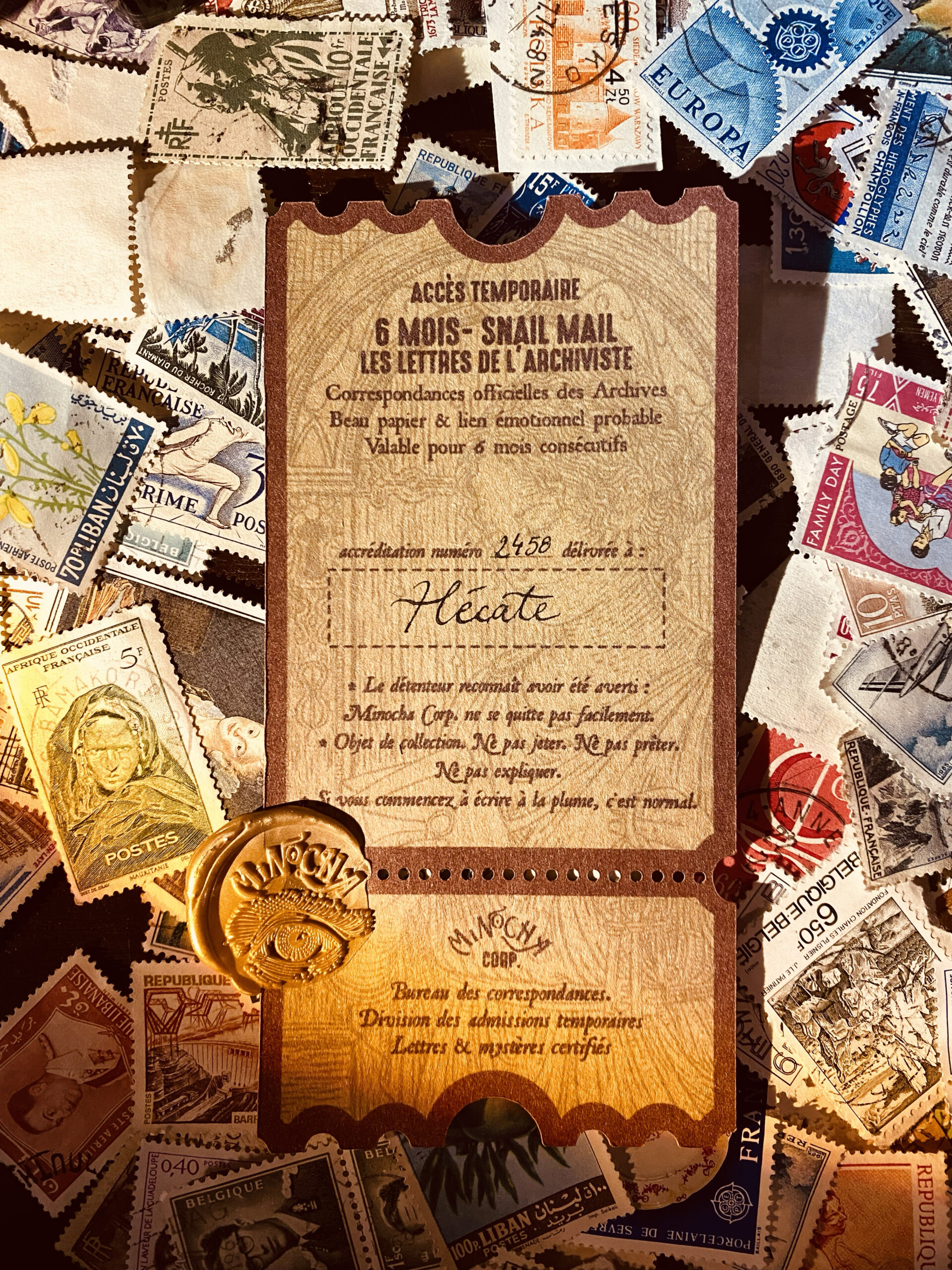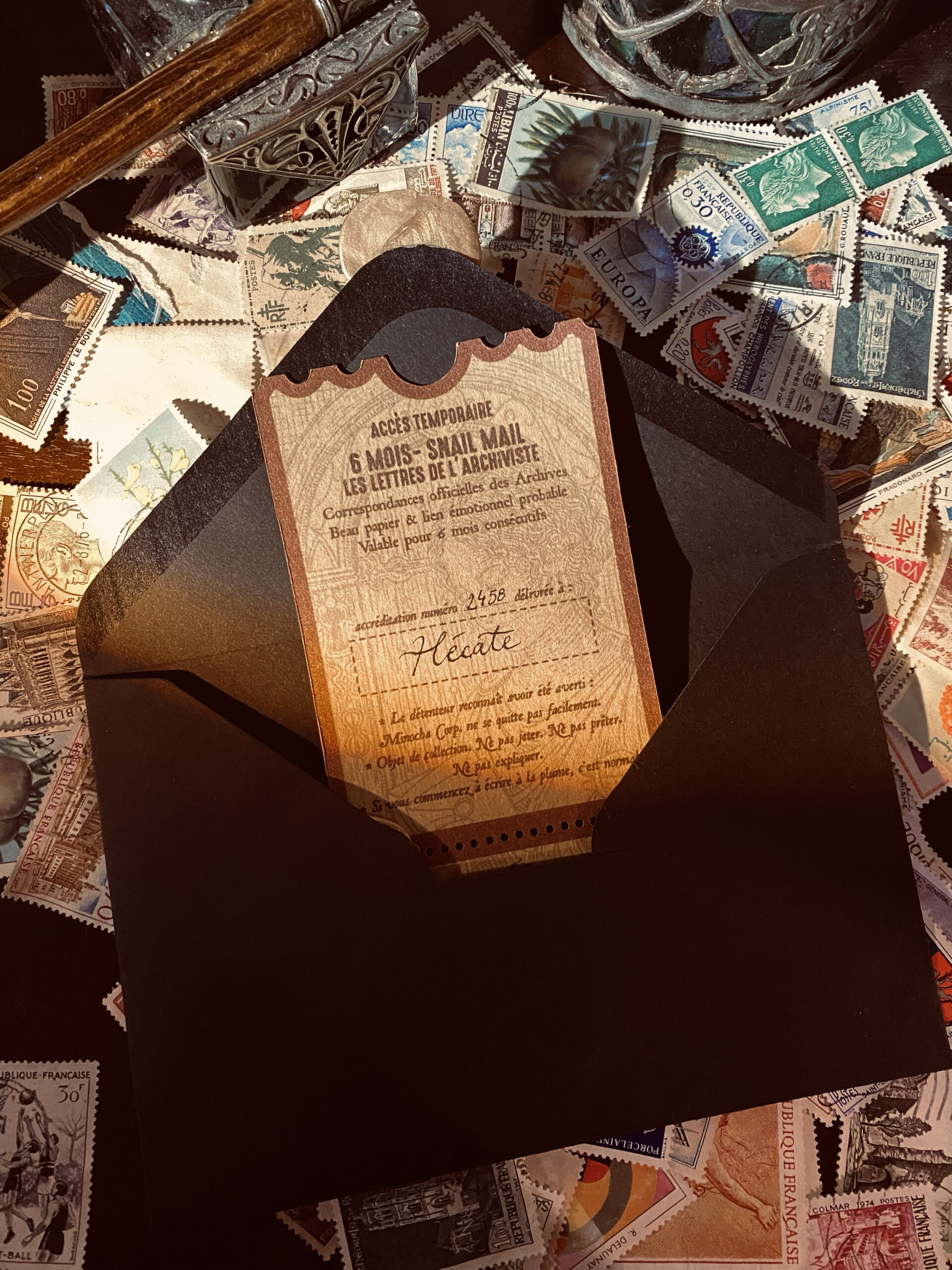 Le ou la destinataire recevra une lettre manuscrite et des goodies exclusifs par mois pendant 6 mois (illustrations, stickers, pliages, gravures…), glissée dans une enveloppe soigneusement préparée.