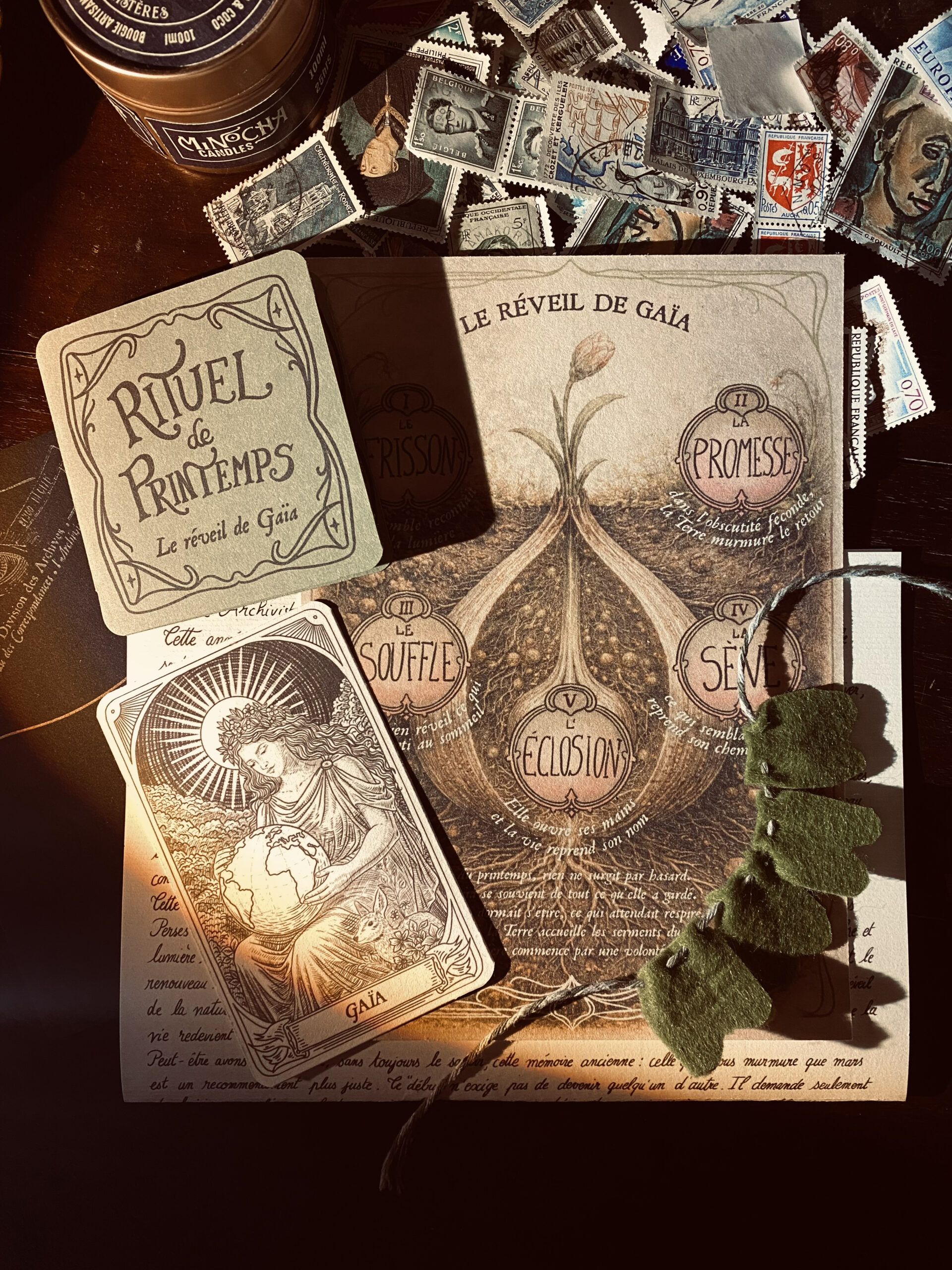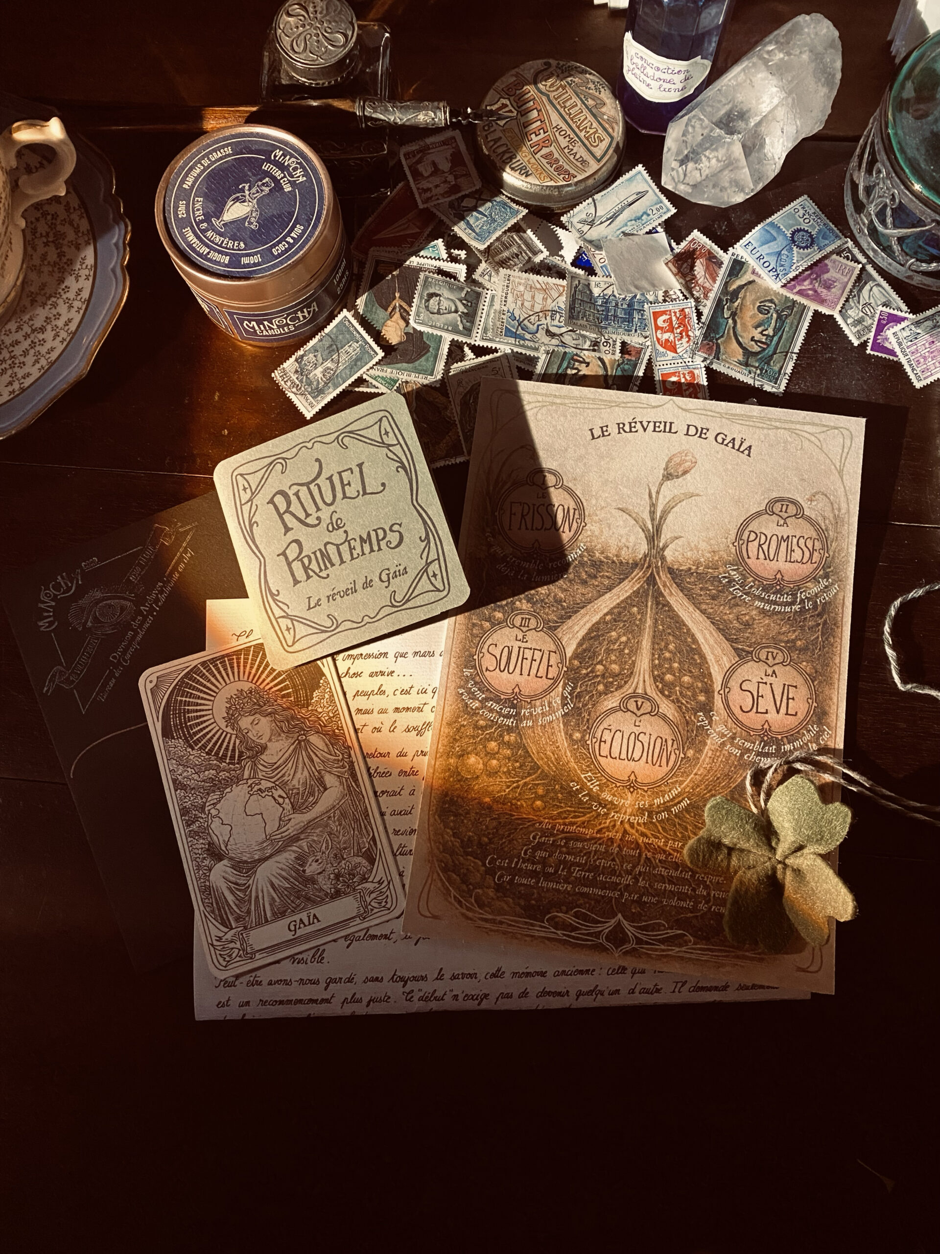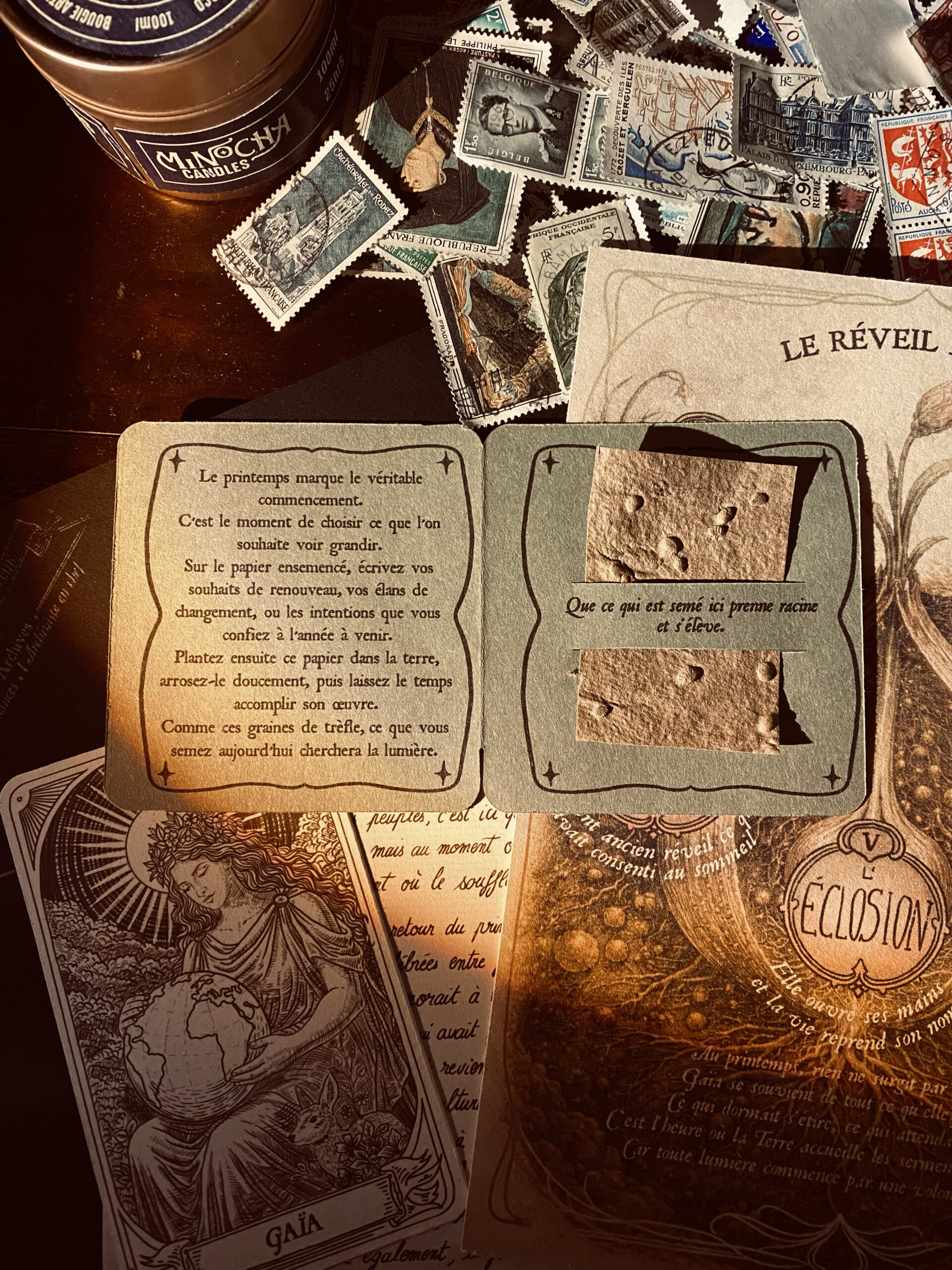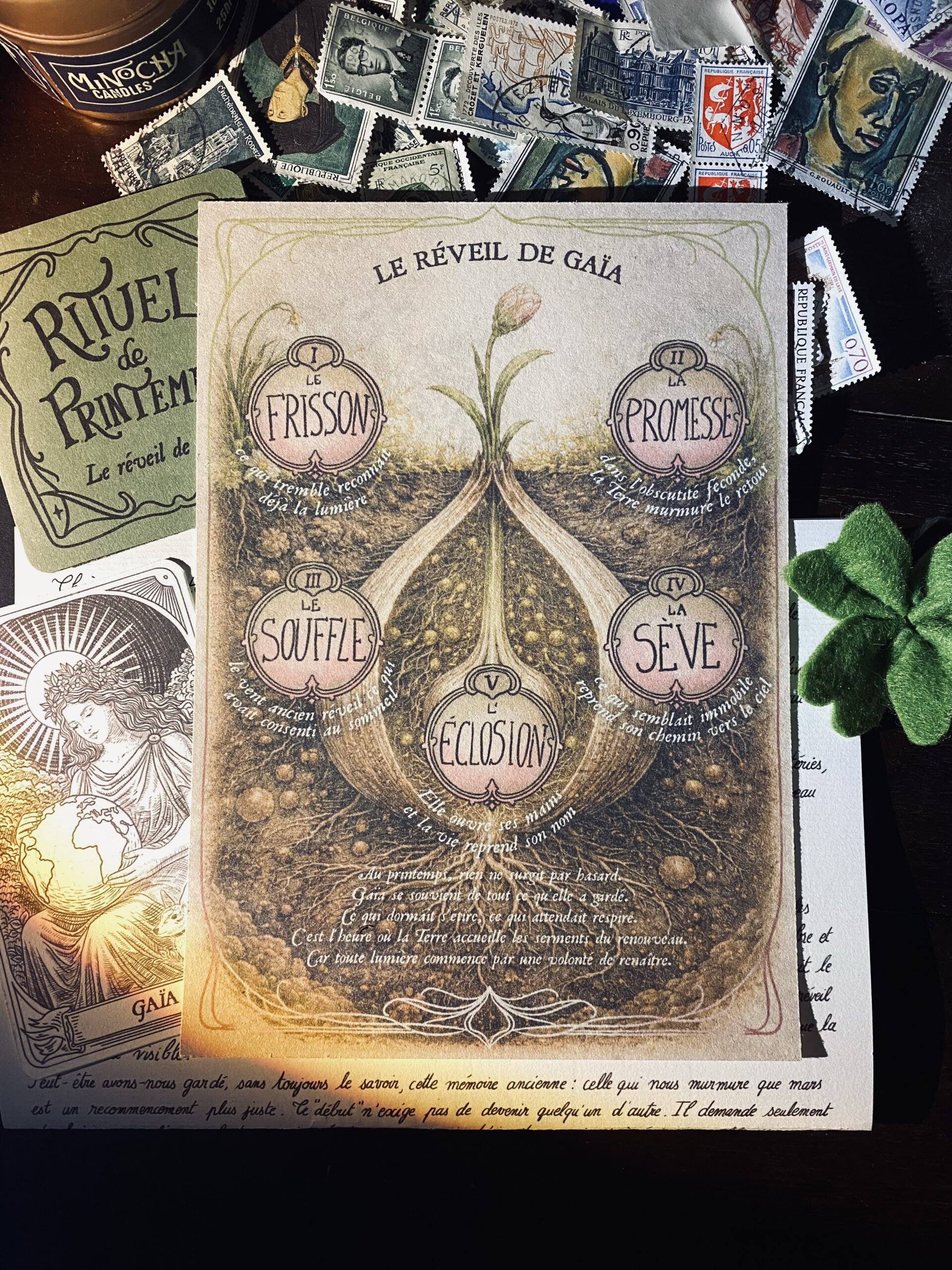 Dans l’atelier, l’Archiviste observe la terre qui s’éveille, attentive aux frémissements presque invisibles qui annoncent le retour du vivant. La lettre évoque le réveil de Gaïa, ce moment fragile où la lumière s’infiltre dans la matière et rappelle aux graines endormies qu’il est temps de remonter. Elle murmure que mars n’est pas seulement le seuil du printemps, mais l’heure discrète où l’on choisit ce que l’on souhaite voir naître et grandir.