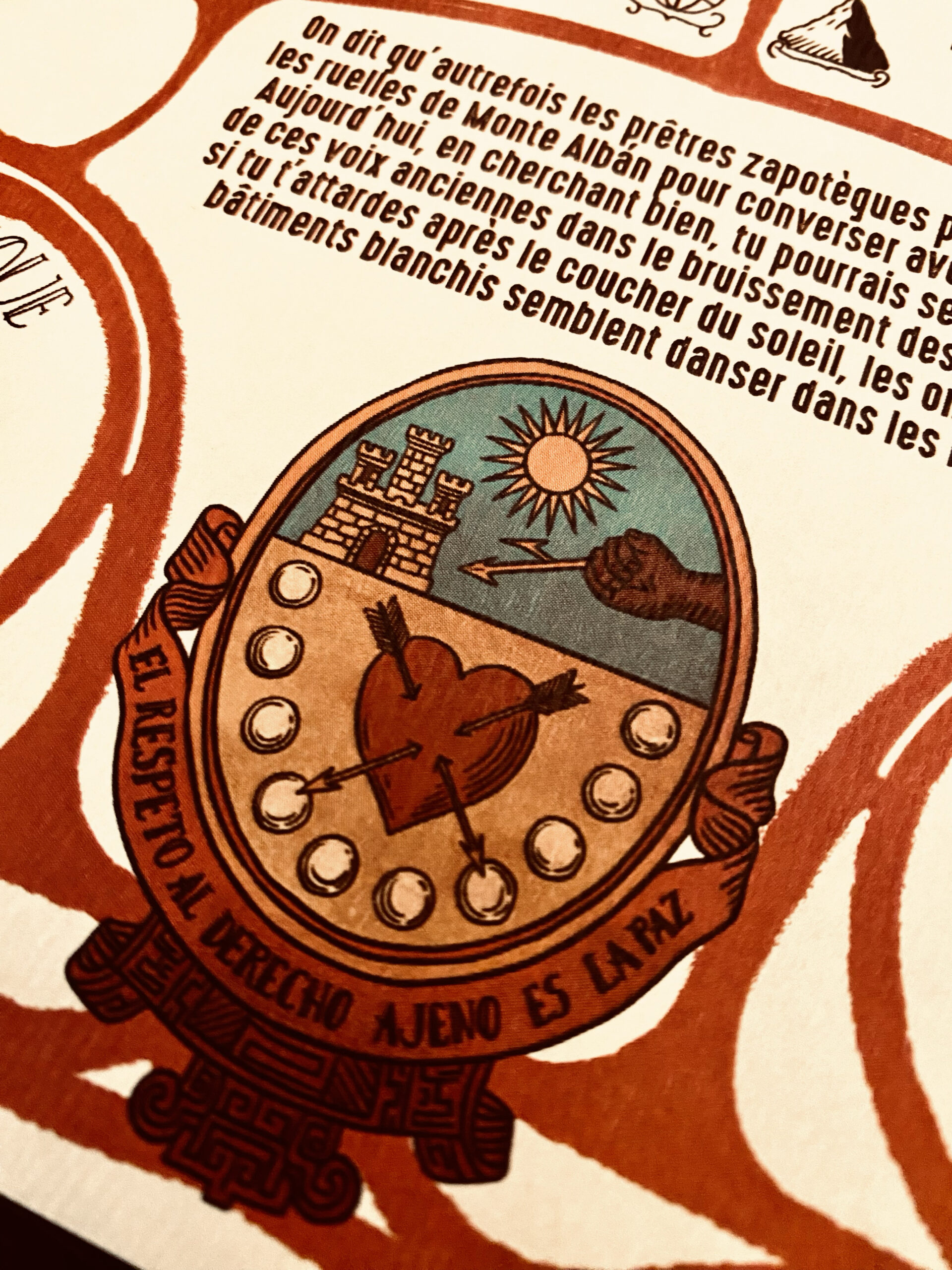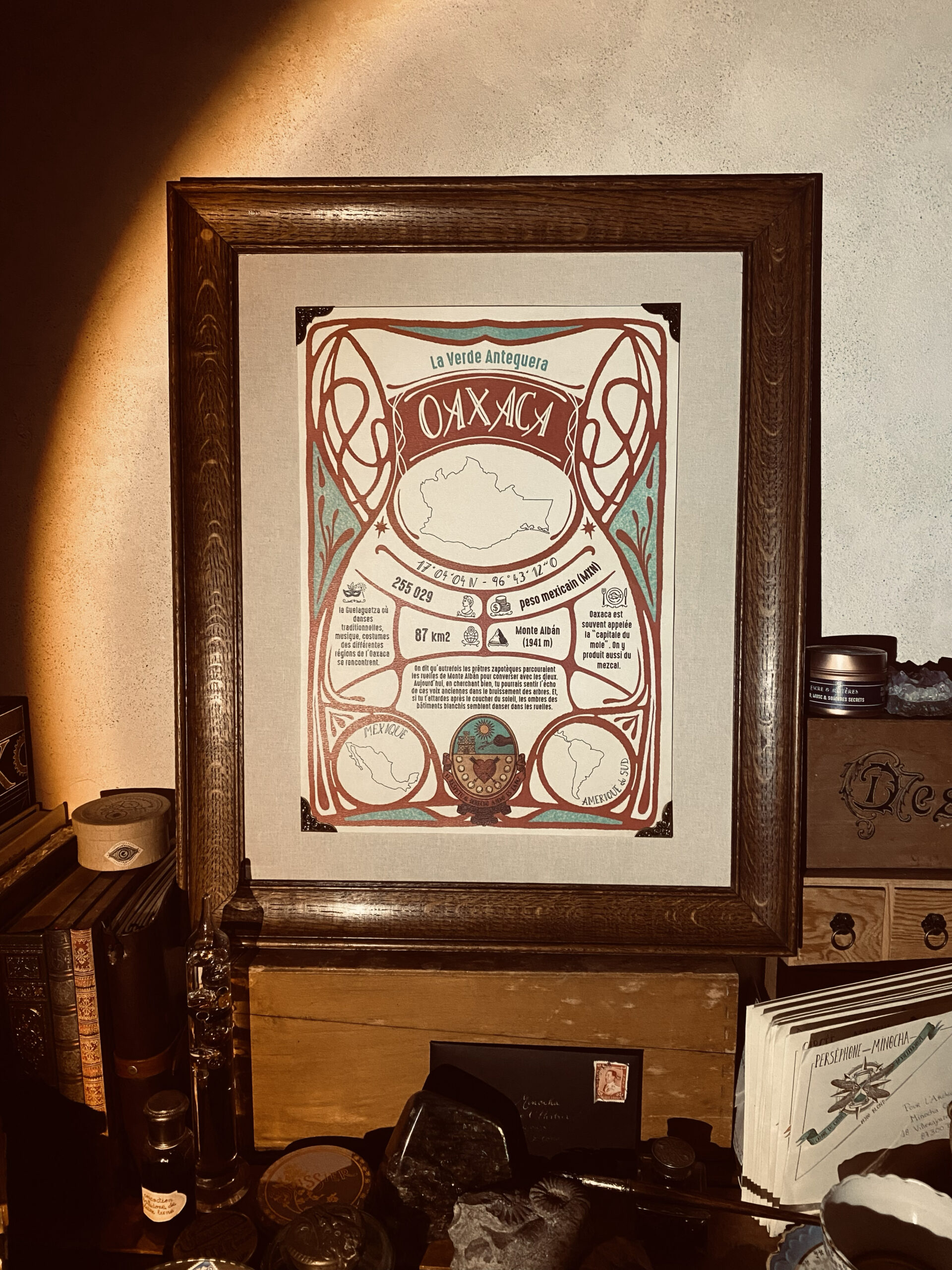 Elle illustre Oaxaca de Juarez et dévoile ses contours géographiques, ses rythmes sociaux et sa richesse culturelle, entre mer, montagnes et effervescence urbaine.